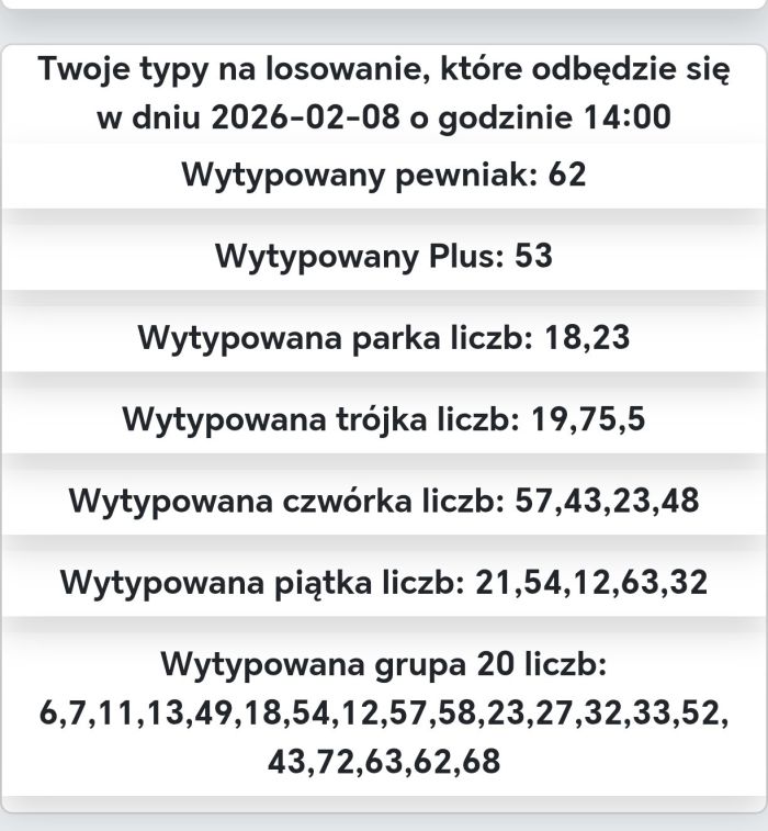 Profil użytkownika Czajka wraz z typowaniami lotto plus