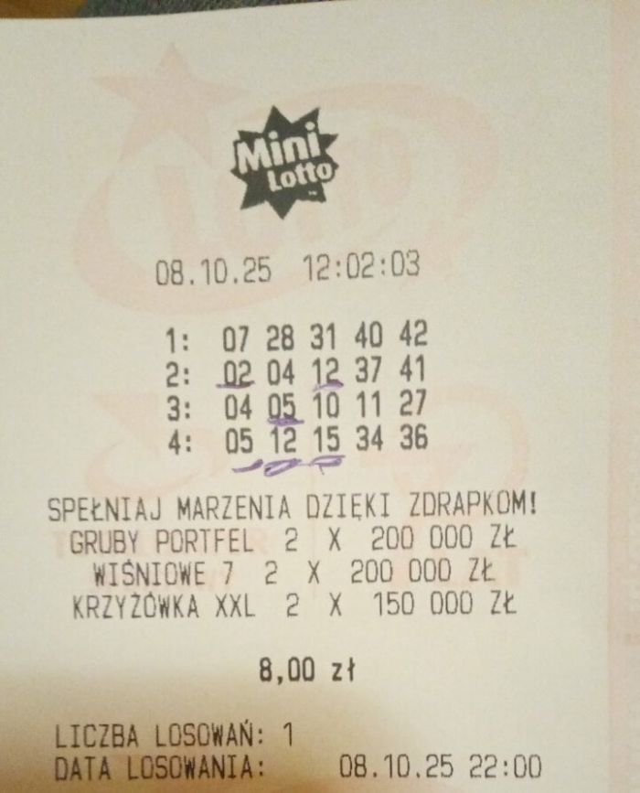 Liga multipasko WRZESIEŃ 2025 - miejsce 63 - 520 pkt.więcej ...