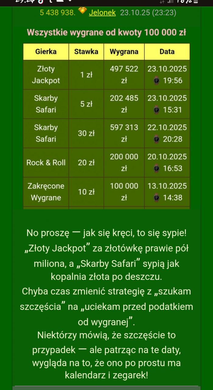 Tobie rowniez Zycze Wysokich Wygranych . Pozdrawiam