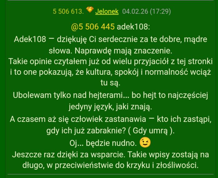 | debiut | 2019-02-16 | ostatnia aktywność --- ostatnio na czacie | 2026-02-04 17:44 --- 2026-02-04 17:44 | |||||||
