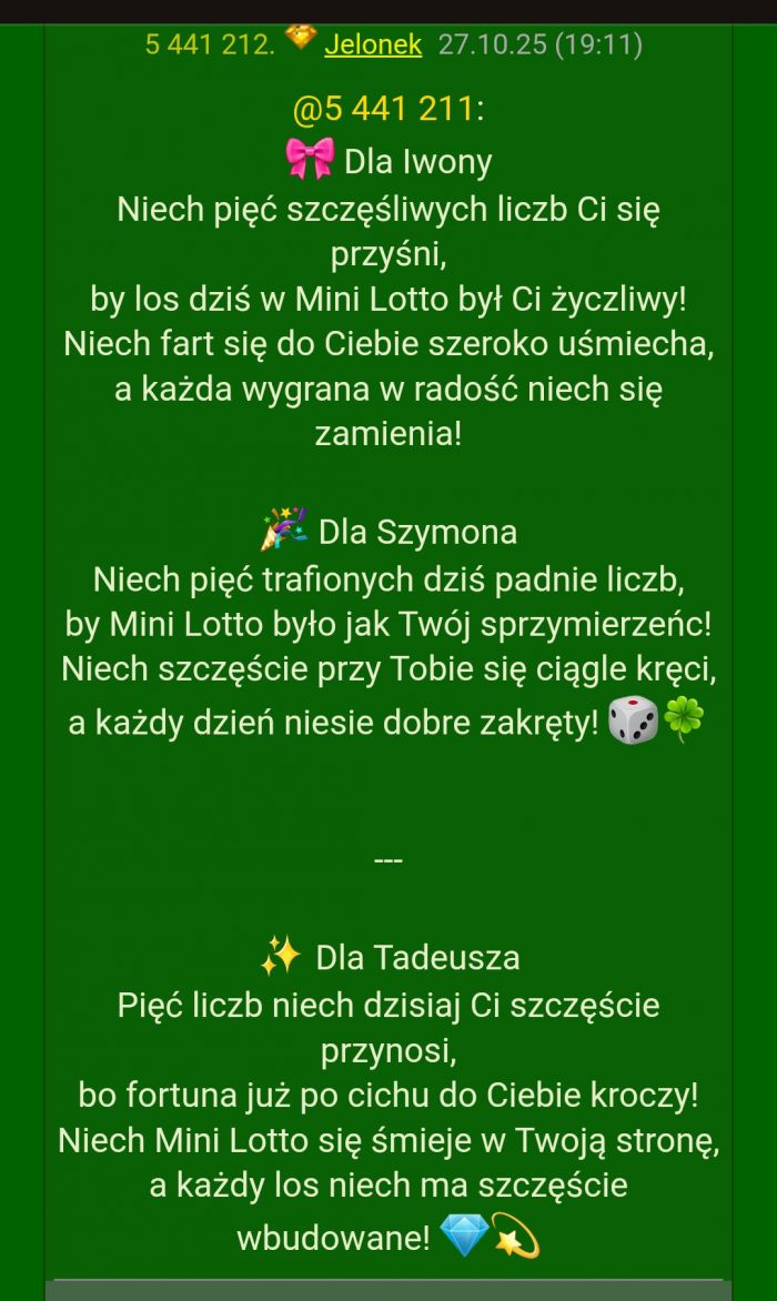 Profil użytkownika Jelonek wraz z typowaniami lotto plus