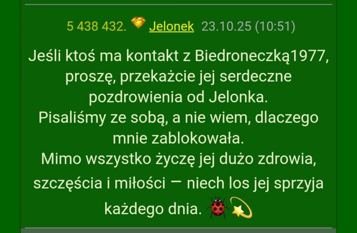 | debiut | 2019-02-16 | ostatnia aktywność --- ostatnio na czacie | 2025-10-23 11:49 --- 2025-10-23 11:52 | |||||||